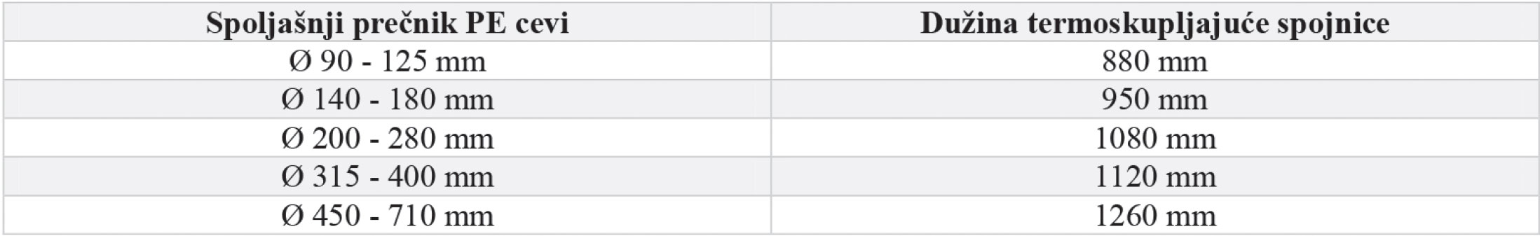 Za izolaciju jednom napregnutih kompenzatora se isporučuje termoskupljajuća spojnica sledeće dužine: